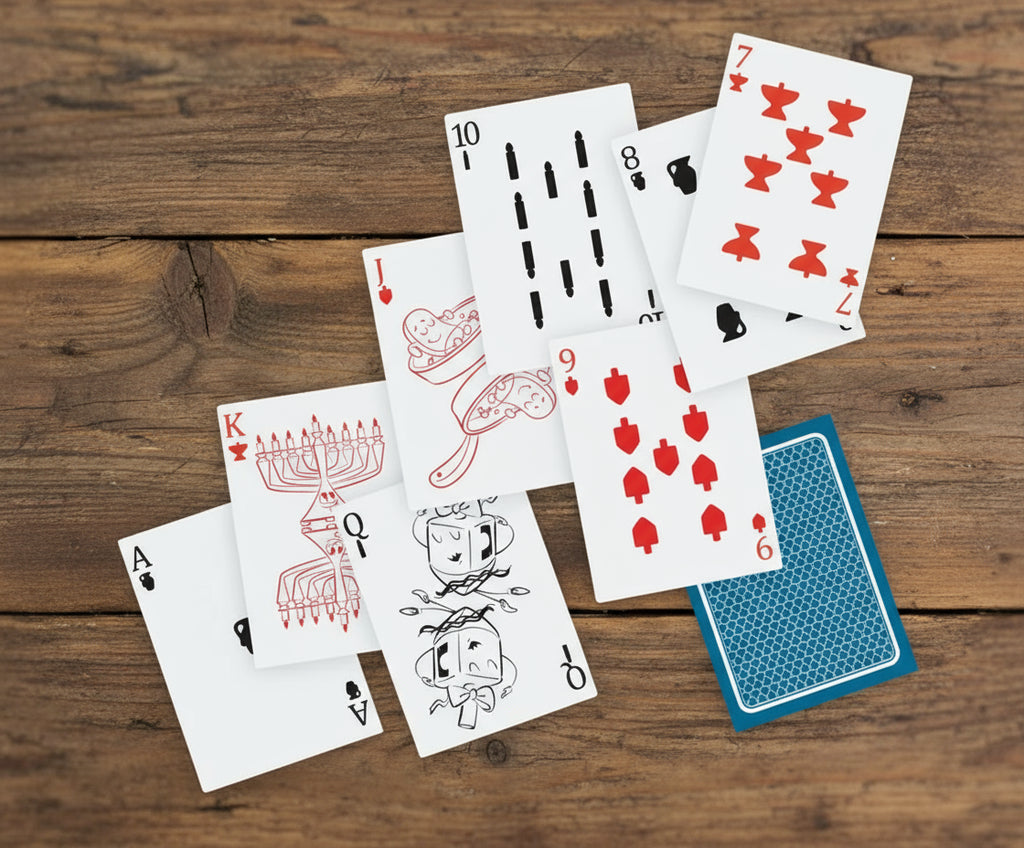 This classic deck of 52 cards comes with a festive twist—featuring cheerful Chanukah-themed designs that make every game more special. Perfect for family game nights, parties, or as a unique holiday gift, these cards are sure to keep everyone entertained well beyond the eight nights.